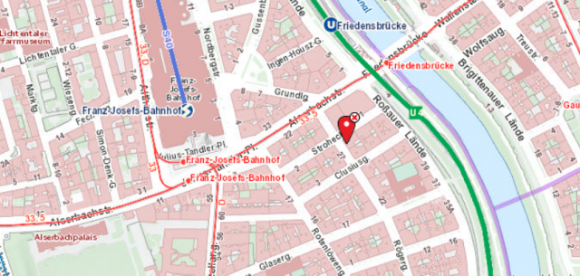 Fußweg: ca 3 Minuten, Richtung Donaukanal - Friedensbrücke, bis zur Ecke Rögergasse links